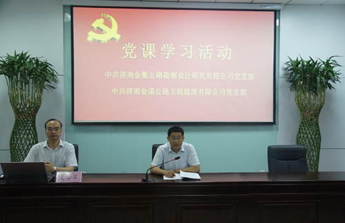 為進(jìn)一步學(xué)習(xí)貫徹落實(shí)黨的十九大精神,深入領(lǐng)會(huì)山東省新舊動(dòng)能轉(zhuǎn)換重大工程會(huì)議要求,激發(fā)廣大黨員干部新時(shí)代新?lián)?dāng)新作為,2018年5月25日下午,濟(jì)南金諾公路工程監(jiān)理有限公司黨支部、濟(jì)南金衢公路勘察設(shè)計(jì)研究有限公司黨支部組織全體黨員、中層及以上干部、積極分子五十余人在金衢公司第一會(huì)議室進(jìn)行黨課學(xué)習(xí)。濟(jì)南金諾公司黨支部書記、董事長(zhǎng)兼總經(jīng)理馮子強(qiáng),濟(jì)南金衢公司黨支部書記、董事長(zhǎng)兼總經(jīng)理張建等領(lǐng)導(dǎo)出席學(xué)習(xí)活動(dòng),會(huì)議由濟(jì)南金衢公司張建書記主持。