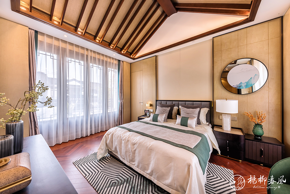 此次對外開放的樣板房一種為新亞洲風格,以“禮”、“樂”為創作靈感,巧妙借用了中式園林框景的手法來演繹時尚的氣質,將室外園林造景與室內裝飾相結合,是古典與現代的一次碰撞。在空間布局上,多處采用中軸對稱的傳統中式手法,大氣之中也展現著家族禮序。南北雙庭院、連接私享露臺的主臥套房、挑空設計的大面積地下空間,處處彰顯著大家風范,在古樸的韻味中體現出一份現代的質感。