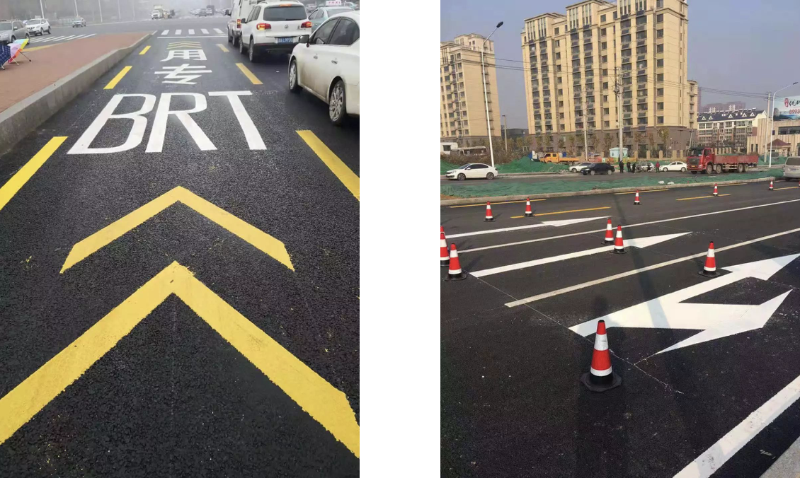 雙組份高亮標(biāo)線涂料的主要原料是 “甲基丙烯酸甲酯”(英文縮寫MMA),此次路面標(biāo)線施劃的標(biāo)線涂料全部采用MMA雙組份,具體施工內(nèi)容為MMA雙組份標(biāo)線(刮涂)6100㎡、MMA雙組份標(biāo)線(甩涂)4300㎡、MMA雙組份標(biāo)線(噴涂)2200㎡。