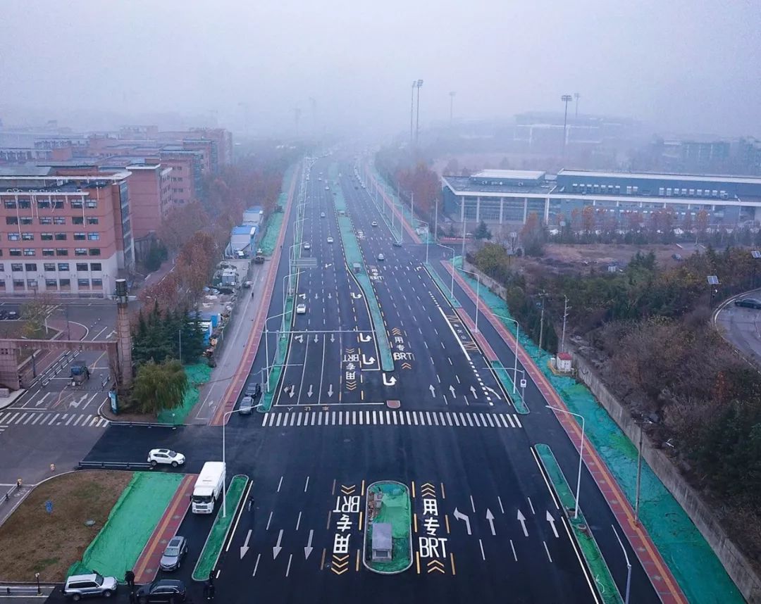 作為濟(jì)南市2018年要打通的28條瓶頸路之一,鳳鳴路12月2日正式建成通車,成為東部城區(qū)南北大通道之一,極大解決了東部出行問題。濟(jì)南城市建設(shè)集團(tuán)所屬濟(jì)南金宇公路產(chǎn)業(yè)發(fā)展有限公司負(fù)責(zé)經(jīng)十路鳳鳴路路口至工業(yè)北路鳳鳴路路口路面標(biāo)線施劃,采用安全系數(shù)強(qiáng)且環(huán)保的新型雙組份材料對該路段進(jìn)行施工,讓生命更安全,讓濟(jì)南天更藍(lán)!