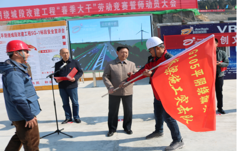 會(huì)上,濟(jì)南市公路管理局項(xiàng)目管理中心曹磊宣讀2019年“春季大干”勞動(dòng)競(jìng)賽活動(dòng)實(shí)施方案;各參建單位項(xiàng)目負(fù)責(zé)人簽訂目標(biāo)責(zé)任狀并作表態(tài)發(fā)言;濟(jì)南市公路管理局郭宗杰副局長(zhǎng)向各施工單位、監(jiān)理單位授勞動(dòng)競(jìng)賽突擊隊(duì)隊(duì)旗,展示勞動(dòng)競(jìng)賽流動(dòng)紅旗并講話(huà)。