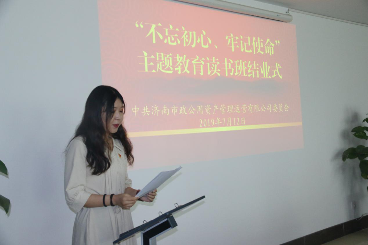 根據中央要求和省委、市委安排部署,按照市委主題教育領導小組辦公室《關于舉辦第二期“不忘初心、牢記使命”主題教育讀書班的通知》和濟南城市建設集團黨委要求,7月5日至7月12日期間,濟南市政公用資產管理運營有限公司舉辦“不忘初心、牢記使命”主題教育讀書班,并于7月12日上午在公司1066會議室舉辦結業儀式。公司黨委副書記、總經理李少成同志出席結業式并講話,公司領導班子成員、主管及以上人員、全體黨員參加了此次結業式,會議由公司黨委委員、副總經理史德茂同志主持。