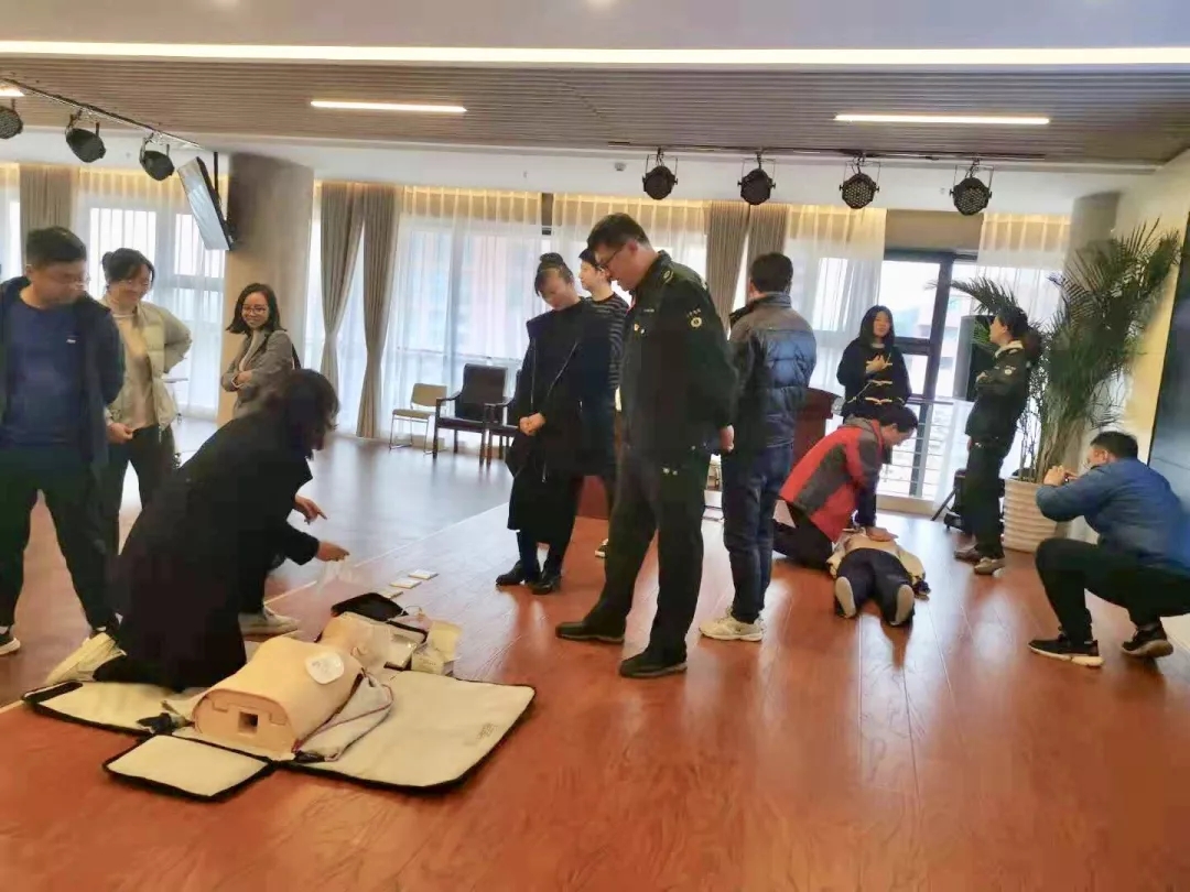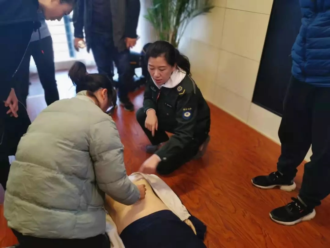 急救中心講師通過參與式的教學(xué)方法和圖文、視頻相結(jié)合的展現(xiàn)形式,通俗易懂地將深奧的醫(yī)學(xué)急救知識向在場的學(xué)員進行了講解。在系統(tǒng)地學(xué)習(xí)了基礎(chǔ)知識和急救流程后,通過模擬場景練習(xí)了心肺復(fù)蘇術(shù)、自動體外除顫儀(AED)的使用、外傷止血包扎等操作,培訓(xùn)導(dǎo)師逐一給予了耐心詳盡的指導(dǎo)。“理論+實踐”的教學(xué)模式下學(xué)員學(xué)習(xí)熱情高漲,主動參與實踐中,教學(xué)效果良好。