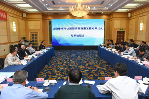 2019年4月,由城建集團(tuán)組織的順河快速路南延隧道工程方案優(yōu)化專家論證會(huì)在濟(jì)南召開,會(huì)議邀請(qǐng)了中國工程院院士、國家最高科學(xué)技術(shù)獎(jiǎng)獲得者錢七虎等多位國內(nèi)知名專家參會(huì),經(jīng)專家論證決策,將工程原設(shè)計(jì)雙側(cè)壁導(dǎo)坑施工法優(yōu)化為單側(cè)壁導(dǎo)坑法,大大減少了隧道施工工序,節(jié)省出大量施工時(shí)間。同時(shí),采用掘進(jìn)機(jī)冷開挖為主、鉆爆開挖為輔的方式進(jìn)行隧道開挖,掘進(jìn)機(jī)開挖噪聲小、安全性高、社會(huì)危害性低、易于控制施工進(jìn)展,彌補(bǔ)了鉆爆開挖振動(dòng)大、對(duì)圍巖整體性破壞大的缺點(diǎn)。