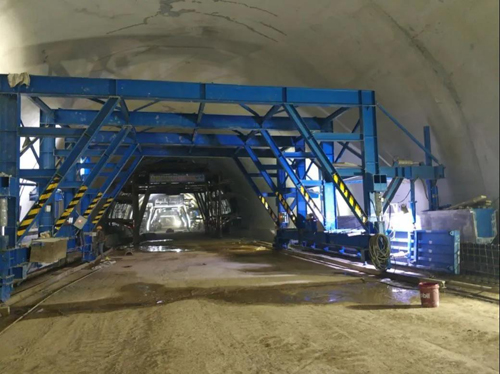 在設(shè)備使用上,項(xiàng)目部結(jié)合實(shí)際、求新求速。“隧道內(nèi)檢修道采用專用門架式臺(tái)車澆筑,具有施工效率高、外觀質(zhì)量好、不中斷洞內(nèi)交通等優(yōu)勢(shì)”,城建集團(tuán)一分公司副經(jīng)理李雷說:“針對(duì)本隧道拱頂為黃土及碎石層的特殊地質(zhì)條件,開挖前采用自進(jìn)式φ108超前大管棚及φ50超前注漿小導(dǎo)管雙重超前支護(hù)形式,同時(shí)在每榀拱腳處均加設(shè)φ108鎖腳及墊板,嚴(yán)格控制隧道沉降量。”