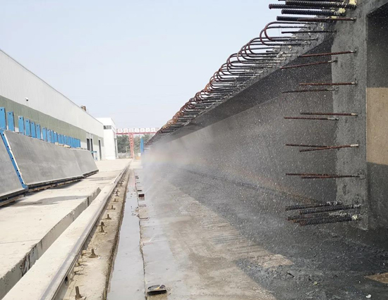 施工現場在嚴格落實“四個一律,六個百分百”環保要求的基礎上,用“可持續”的眼光對項目傳統的施工工藝、技術等重新審視、改進?,F場安裝揚塵、噪音在線檢測設施;鋼筋加工區采用焊煙凈化器;灰土施工采用粉料撒布機,配合濕法作業;箱梁自動養護噴淋系統,滿足梁板養護質量同時提高了水資源的循環利用;鋼筋加工集約化,實現文明施工,既減輕了工地施工現場管理負擔,又減少多點位的環境噪音、煙氣污染源,從根本上改善了施工擾民問題。