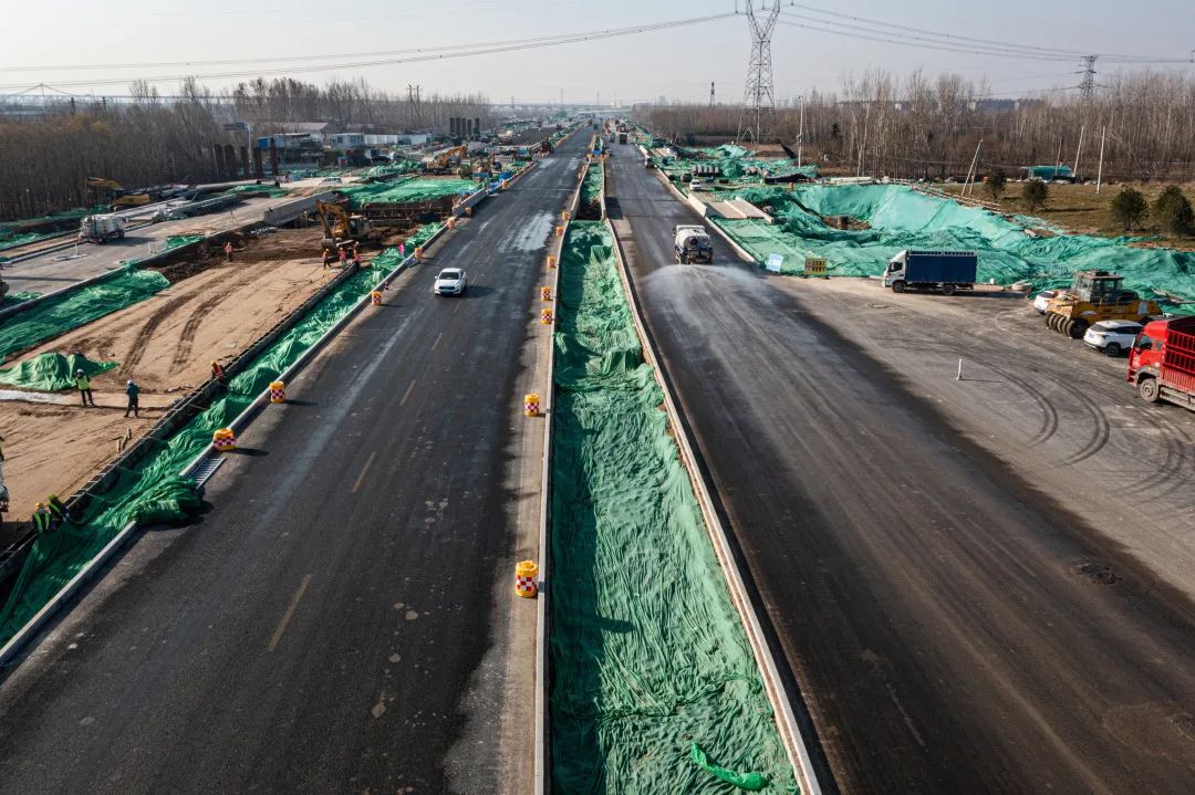 12月6日,由濟(jì)南城市建設(shè)集團(tuán)受委托建設(shè),中建八局二公司負(fù)責(zé)施工的濟(jì)南黃河大道(一期)工程五標(biāo)段(邢家渡干渠-104國道)實(shí)現(xiàn)北半幅主路快車道通車,順利完成既定節(jié)點(diǎn)施工。黃河大道該標(biāo)段通行車道由雙向兩車道增加至四車道,通行能力進(jìn)一步提高。此外,崔寨南互通立交段北側(cè)兩個(gè)匝道口開放通行,南側(cè)兩個(gè)匝道口進(jìn)入施工階段。
