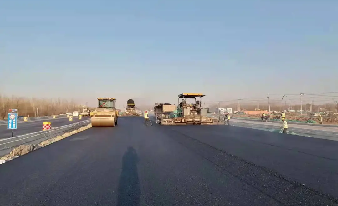 在濟(jì)樂高速崔寨南互通立交南側(cè)出口處,項(xiàng)目與山東省交通科學(xué)研究院合作,首次在濟(jì)南市政工程中試驗(yàn)應(yīng)用全厚式瀝青攤鋪技術(shù)。該技術(shù)不但能有效提高路面結(jié)構(gòu)使用壽命,同時(shí)可以減少水泥穩(wěn)定碎石的使用量,在優(yōu)化瀝青路面級(jí)配的同時(shí),節(jié)省工程造價(jià),并將施工工期縮減為原來的60%左右。