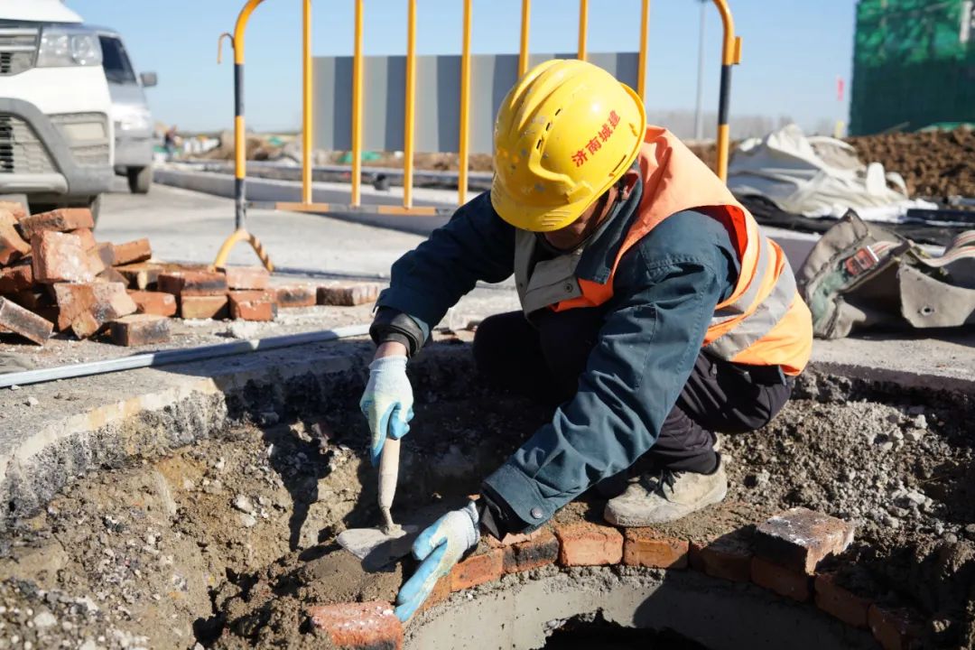 入冬以來,濟南氣溫驟降。黃河大道(一期)工程克服寒潮低溫及雨雪天氣等不利因素,落實冬期施工保障措施,晝夜奮戰,搶抓工期,施工現場熱火朝天。截至11月15日,由建設集團所屬濟南城建集團有限公司負責施工的三標段,慢車道已基本完成水穩基層與瀝青路面施工,現正加緊對路沿石與花磚進行鋪設。
