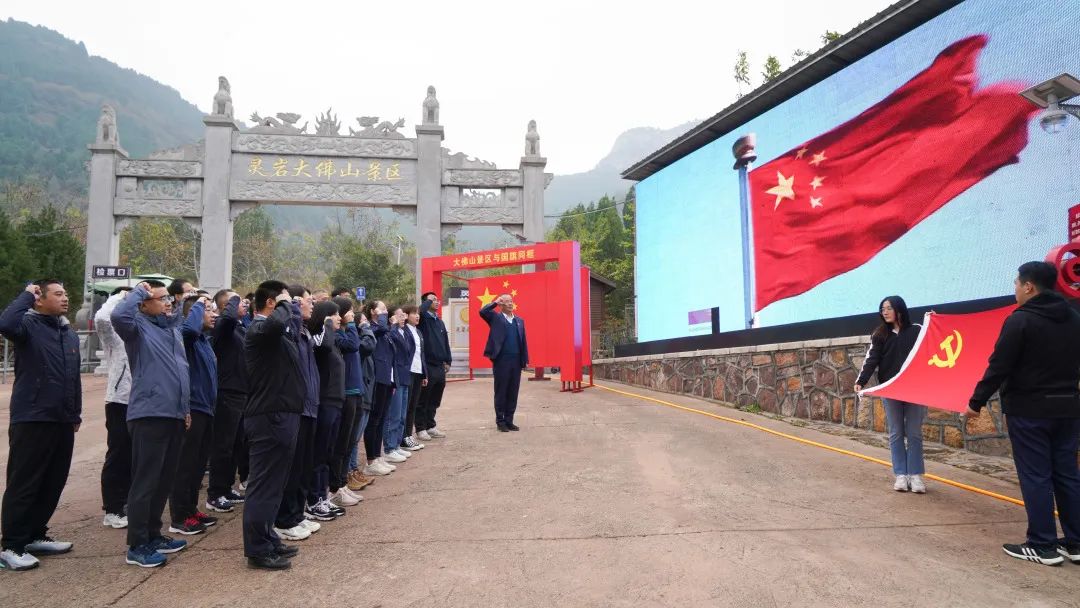 活動中,黨員干部們在黨旗下重溫入黨誓詞,并在村委管理人員的帶領下,參觀了靈巖村的旅游建設。通過詳細的解說,大家了解到靈巖村黨支部著力加強黨支部自身建設,充分發揮黨建引領和黨支部戰斗堡壘作用,大力弘揚新時代泰山“挑山工”精神,咬定“綠水青山就是金山銀山”發展目標,團結帶領全村黨員群眾就地取材,開發建設大佛山景區,以發展鄉村旅游為主業,助力實現鄉村振興。