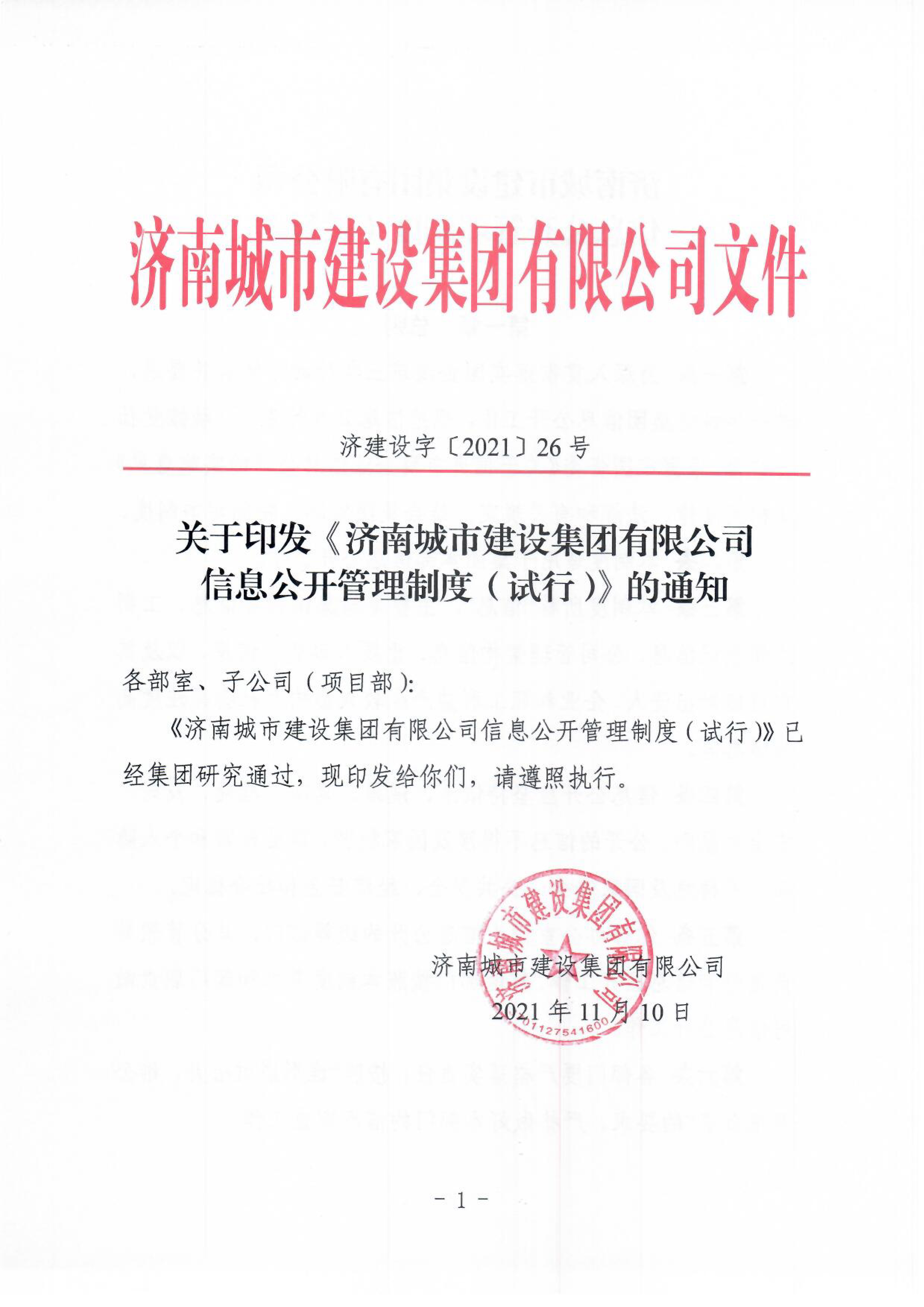 關(guān)于印發(fā)《濟(jì)南城市建設(shè)集團(tuán)有限公司信息公開(kāi)管理制度(試行)》的通知