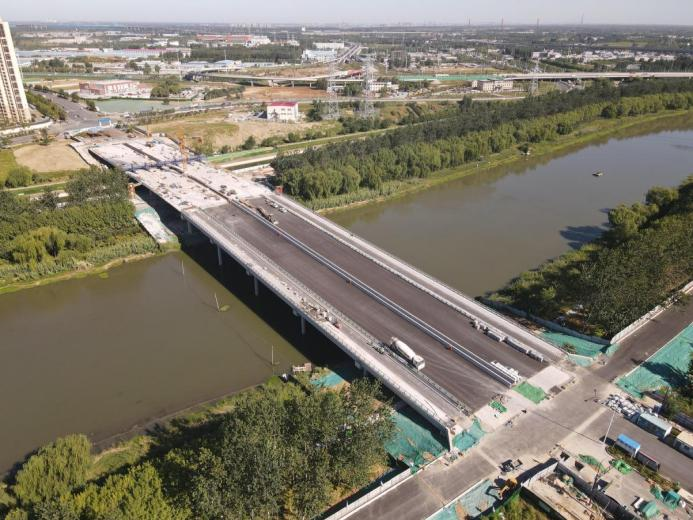 奧體中路跨小清河橋梁工程跨越南水北調(diào)明渠及小清河河道,橋梁全長349m,橋面寬50m,于2021年4月15日開工建設(shè),是奧體中路北延的重要組成部分,建成后將主城區(qū)和華山片區(qū),濟(jì)樂高速與市區(qū)快速連通,是構(gòu)成濟(jì)南市東部重要的南北向交通通道。