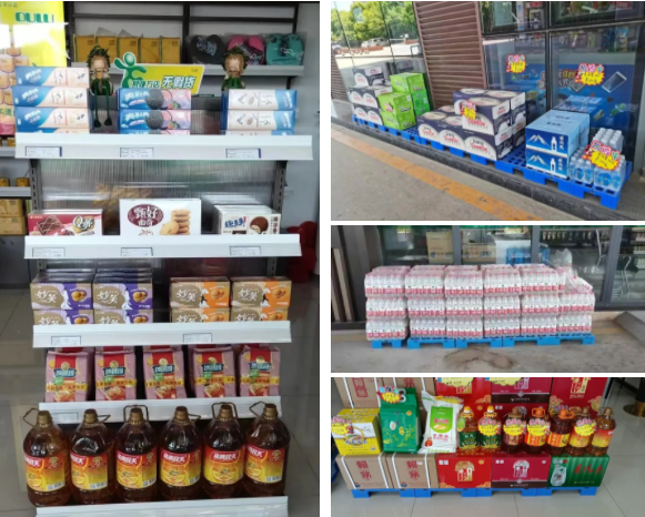 同時(shí),便利店積極備好防疫用品,在收銀臺(tái)等醒目位置陳列擺放,保障米面油、飲用水及居民生活用品商品不斷供,承諾做到“不打烊、不漲價(jià)、保供應(yīng)”,為防疫工作做好物資保障。