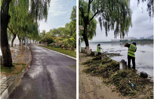 降雨過后,長清湖水面及沿岸道路出現(xiàn)不同程度的雜物和淤泥,為有效控制暴雨后對環(huán)境帶來的破壞和污染,景區(qū)組織保潔人員用高壓水車以及掃帚等工具著重道路清掃、清理淤泥,并將重點對湖面雜物進行清理清潔,確保在最短時間內恢復景區(qū)環(huán)境。