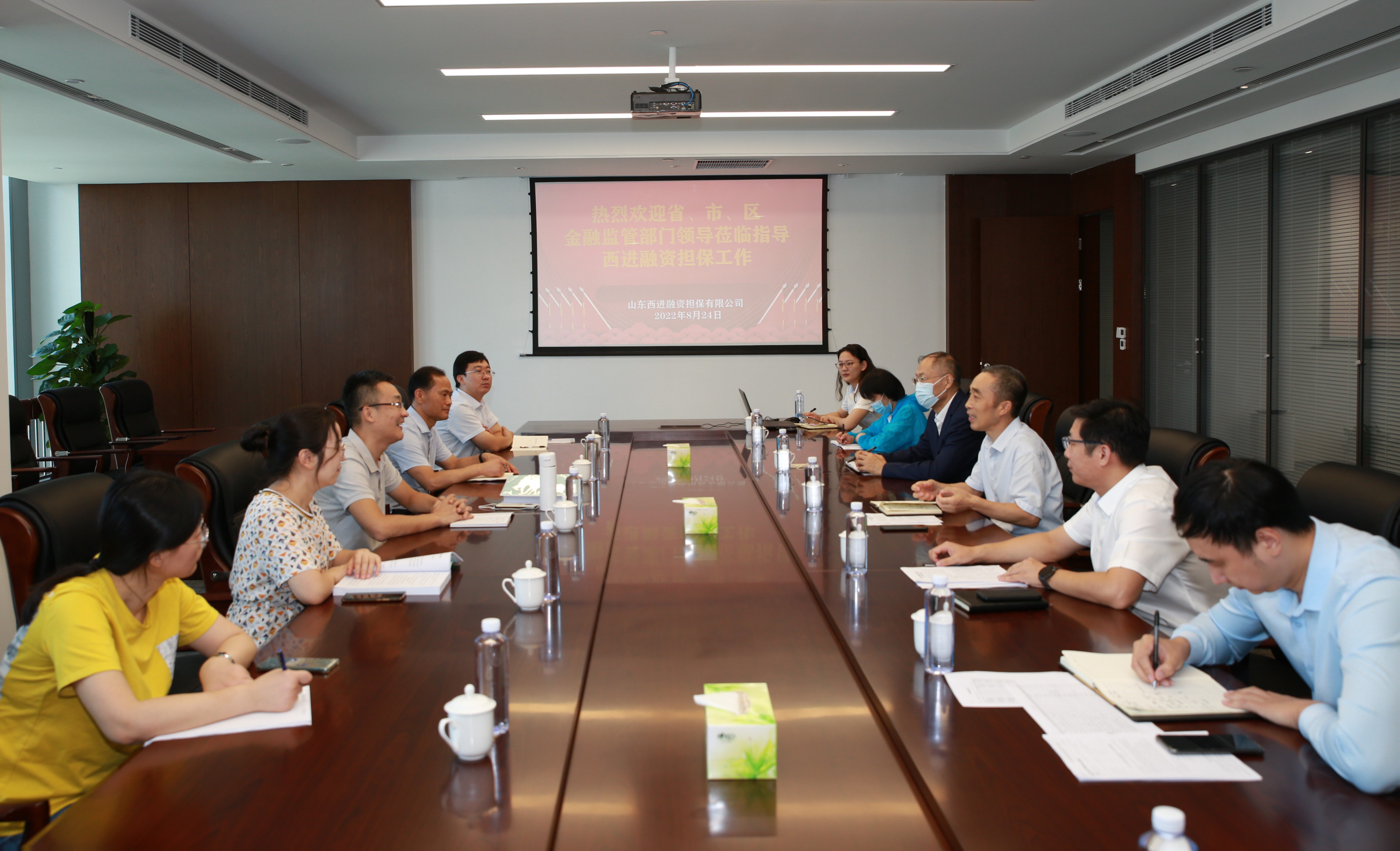 8月24日上午,山東省地方金融監管局監管二處岳曉光處長一行來到山東西進融資擔保有限公司開展專項檢查,并召開工作會議。市、區金融監管部門相關領導陪同參加,集團黨委委員、總會計師范天云,西進擔保公司相關人員參加了會議。