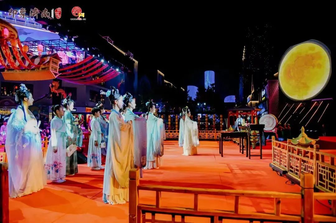 本次活動,作為印象濟(jì)南•泉世界品牌文化節(jié)事活動的又一創(chuàng)新呈現(xiàn),同時(shí)還是第十屆濟(jì)南國際泉水節(jié)的重要組成部分。中秋拜月大典在前四屆的經(jīng)驗(yàn)基礎(chǔ)上,以“盛世歡歌繁華鎏金”主題,通過拜月典禮、文旅演藝、國風(fēng)互動等組合創(chuàng)意,持續(xù)打造踐行“文化兩創(chuàng)”的新載體。今年的中秋拜月大典,在展現(xiàn)祭月、賞月、拜月、頌月等傳統(tǒng)民俗的同時(shí),通過歌舞表演、舞臺氛圍、國風(fēng)互動等形式融合展示,運(yùn)用多元形態(tài)傳播中華優(yōu)秀傳統(tǒng)文化,讓傳統(tǒng)文化創(chuàng)新展示展演,深入游客內(nèi)心。