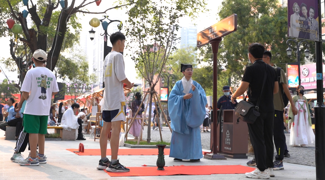 除了第五屆中秋拜月大典,中秋小長假期間印象濟(jì)南·泉世界還相繼舉辦了濟(jì)南市金秋消費(fèi)季啟動儀式、濟(jì)南金秋消費(fèi)季電商直播帶貨、慕師禮、國風(fēng)市集、漢服快閃秀、脫口秀演出、嗨Fun全場樂隊(duì)專場演出等活動,街區(qū)精彩活動接連不斷,營造了歡樂祥和的節(jié)日氛圍。