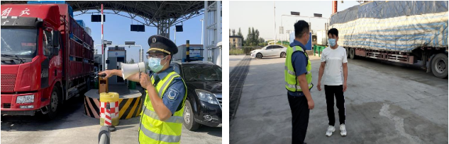 堅決落實“十一”假期高峰時段對危化品、超限超載車輛等限行工作,外勤為司乘人員耐心解釋并普及相關(guān)政策。