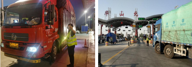 節(jié)前與轄區(qū)防疫部門溝通,節(jié)假日車流量增大,提前增派防疫人員,增加場所碼掃描標識,全力保障收費站暢通。