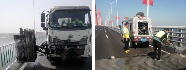 對橋面、防護欄進行深度保潔,為過往司乘提供舒適的出行環(huán)境。