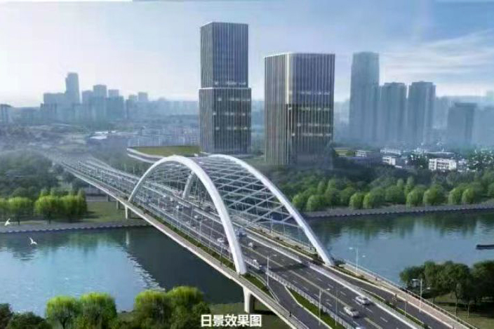 二里橋路跨京杭運河節點工程是京杭運河上單跨徑最大的橋梁工程,項目起點順接二里橋路,向東延伸至京杭北路,長840米,寬40米,工程總投資約2.85億元。橋梁設計方案為“鏡湖明月”,采用“鋼箱提籃拱”結構,造型美觀,與運河兩岸建筑和環境巧妙融合。