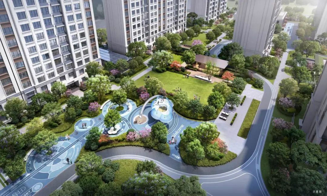 小區(qū)園林景觀規(guī)劃兩軸一庭五園的設(shè)計(jì),約46.9㎡戶均景觀面積和約1600㎡中庭景觀,涵蓋約100㎡浮光會(huì)客廳及草坪劇場(chǎng),約500㎡全齡段兒童樂園,打造高端園林社區(qū)。