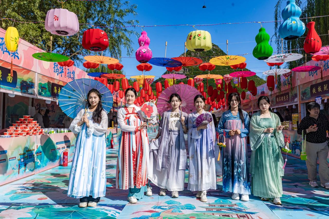 10月1日,濟(jì)南華山風(fēng)景區(qū)古風(fēng)市集——鵲華雅集開市,70多家市集商戶還原古代市集繁榮市貌,現(xiàn)場歌舞不斷、琴聲悠揚(yáng)。