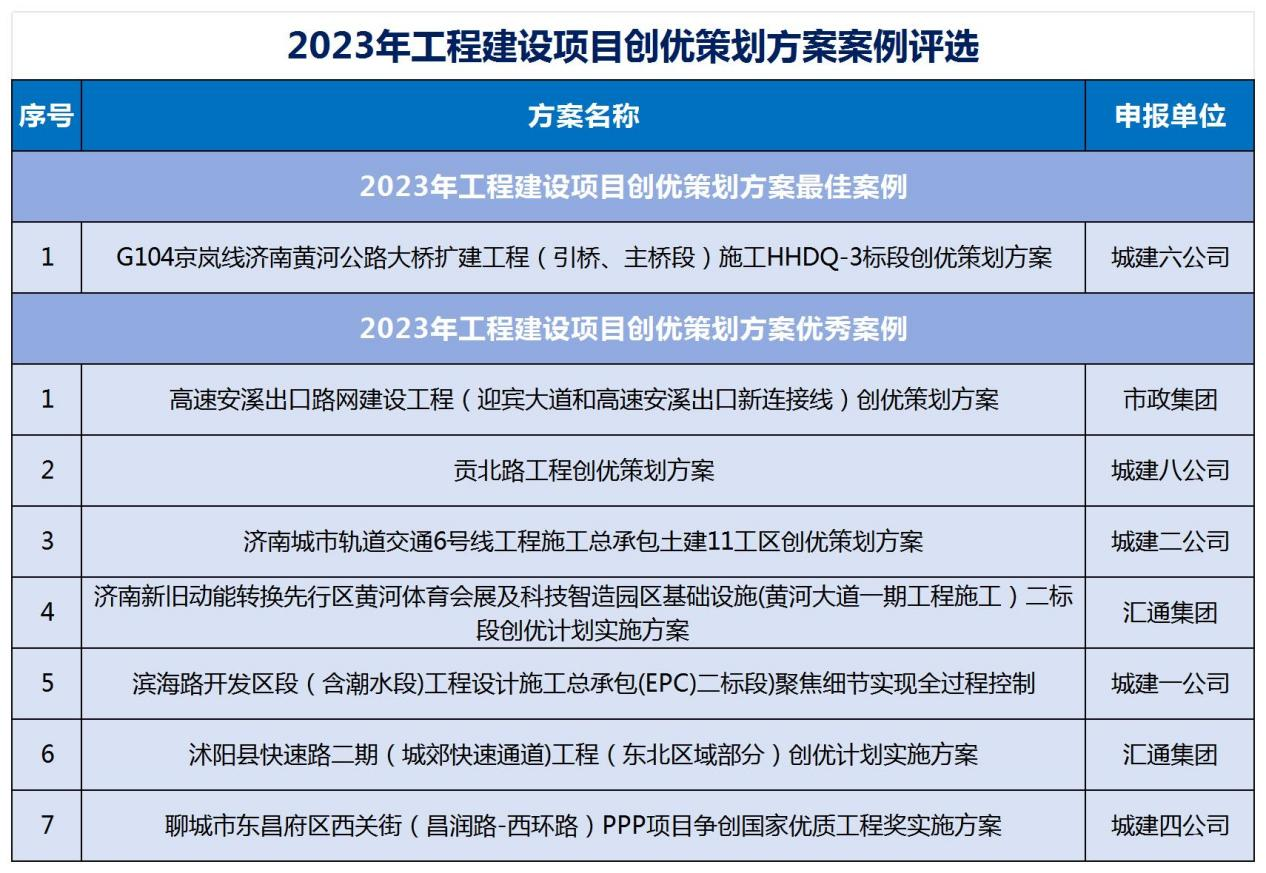 近日,由中國施工企業(yè)管理協(xié)會主辦的工程建設項目創(chuàng)優(yōu)策劃方案典型案例征集活動舉行,建設集團所屬濟南城建集團公司報送的《G104京嵐線濟南黃河公路大橋擴建工程(引橋、主橋段)施工HHDQ-3標段創(chuàng)優(yōu)策劃方案》在本次活動中獲評最佳案例,《濱海路開發(fā)區(qū)段(含潮水段)工程設計施工總承包(EPC)二標段)聚焦細節(jié)實現(xiàn)全過程控制》等7項方案獲評優(yōu)秀案例。