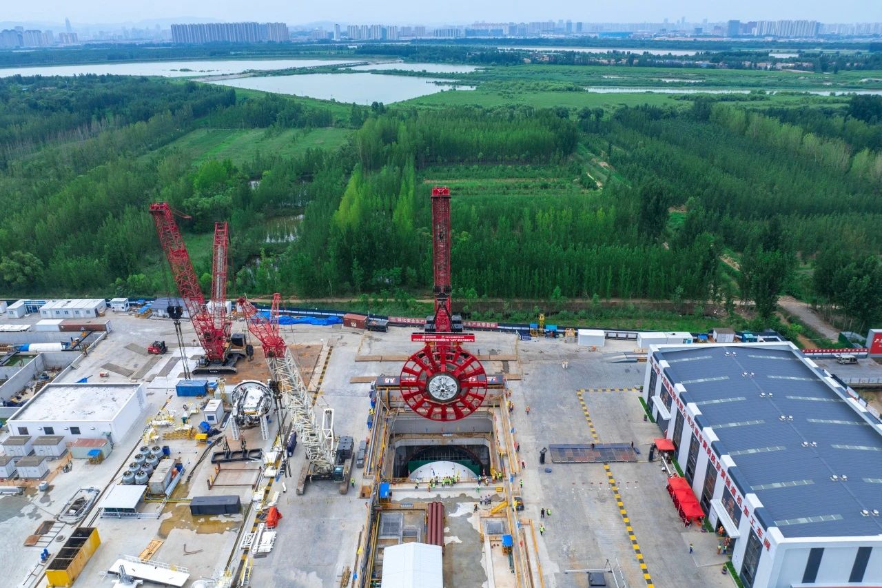 盾構始發進入“倒計時”!濟南市黃崗路穿黃隧道“山河號”盾構機刀盤吊裝下井