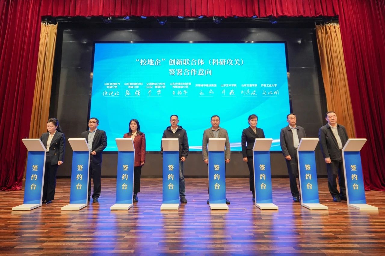 會(huì)上,建設(shè)集團(tuán)與齊魯工業(yè)大學(xué)、山東交通學(xué)院、山東藝術(shù)學(xué)院等7家單位簽訂合作意向書(shū);集團(tuán)所屬山東金宇信息科技集團(tuán)有限公司作為“校地企”創(chuàng)新聯(lián)合體(科研攻關(guān))成員單位進(jìn)行路演。
