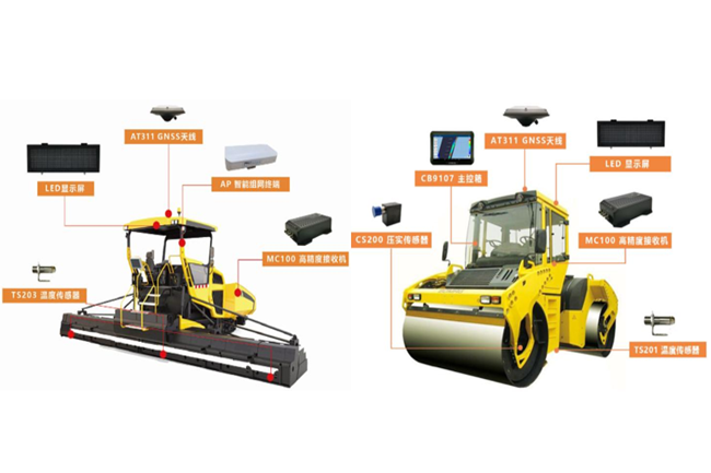 城建集團(tuán)公司創(chuàng)新應(yīng)用的“數(shù)字化、智能化生產(chǎn)監(jiān)控系統(tǒng)”,通過GNSS天線、AP智能組網(wǎng)終端、TS溫度傳感器等外置設(shè)備,將攤鋪機(jī)與壓路機(jī)進(jìn)行組網(wǎng),同步采集攤鋪數(shù)據(jù),通過LED顯示器實(shí)時(shí)顯示攤鋪速度、攤鋪溫度、碾壓速度、碾壓溫度等關(guān)鍵參數(shù),通過無線信號(hào)發(fā)射天線,實(shí)時(shí)上傳數(shù)據(jù)至終端系統(tǒng),施工管理人員通過數(shù)據(jù)把控施工質(zhì)量,可對(duì)質(zhì)量進(jìn)行追溯,實(shí)現(xiàn)對(duì)項(xiàng)目建設(shè)質(zhì)量的精細(xì)化把控。