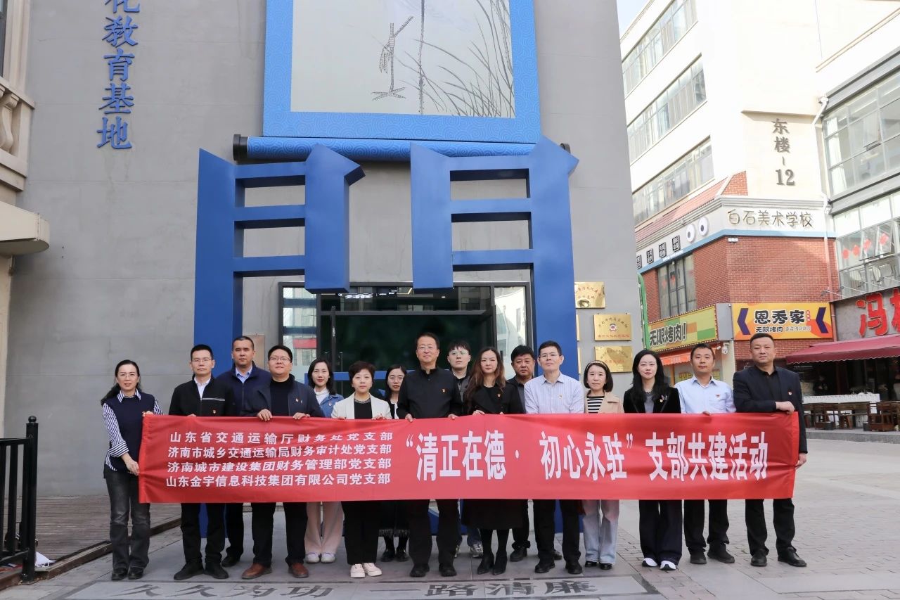 為推進深入貫徹中央八項規定精神學習教育走深走實,強化黨員干部廉潔意識,近日,建設集團財務管理部黨支部、建設集團所屬山東金宇信息科技集團黨支部與山東省交通運輸廳財務處黨支部、濟南市城鄉交通運輸局財務審計處黨支部組織黨員赴“印象濟南·一路清廉”廉潔文化教育基地,開展“清正在德·初心永駐”共建活動。